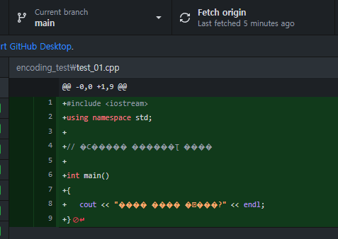 : GitHub 나 GitHub DestTop에 비주얼 스튜디오에서 작성한 cpp 파일을 커밋 시 한글이 깨짐