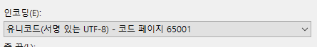 이 셋팅을 마치고 나면 이 다음부터 생성하는 파일들은 "한국어 - 코드 페이지 949" 로 인코딩 되지 않고